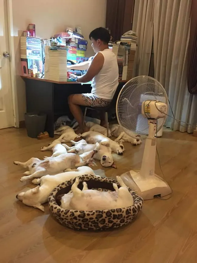 จนกระทั่งล่าสุดเมื่อวันที่ผ่านมาเขาได้แบ่งปันเรื่องราวในกลุ่มรักหมาจังว่า ตอนเพื่อนผมมาถามว่าเลี้ยงหมาเยอะๆ รู้สึกยังไง? ผมก็ตอบไปว่า..ตอนตัวสองตัว ก็รู้สึกสนุกดีไม่เหงา พอ 3 4 5 ตัว ก็ยิ่งรู้สึกเพลิดเพลิน..แต่พอ 18-19-20 ก็ไม่รู้สึกอะไรอีกแล้ว