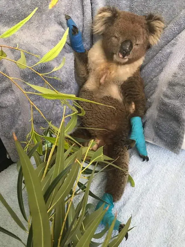 โคอาล่าถูกไฟไหม้ขาทั้ง 4 ข้าง ได้รับการดูแลแบบนอกกรอบ ในที่สุดก็ปลอดภัยแล้ว