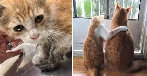 ลูกแมวจรตัวจิ๋วใช้เท้าตะกุยผนัง จนเจอครอบครัวที่ตามหา และแมวบ้านนั้นก็ดูแลเทคแคร์อย่างดี