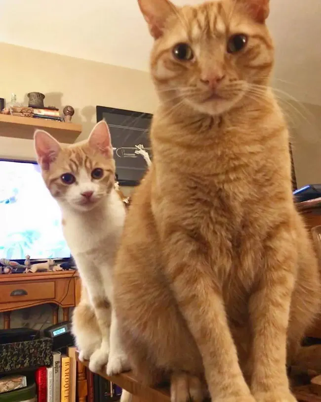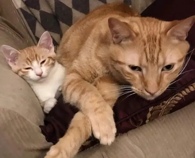 แมวและสุนัขเจ้าของบ้าน ยิ่งไปกว่านั้น เจ้า Ollie แมวสีส้มอายุ 6 ขวบเป็นตัวที่ตื่นเต้นกว่าตัวอื่นและแทบจะทำเกินหน้าที่ในการดูแลน้องใหม่