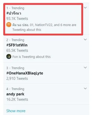 แห่ติดแฮชแท็ก ปารีณา มาเป็นอันดับ 1