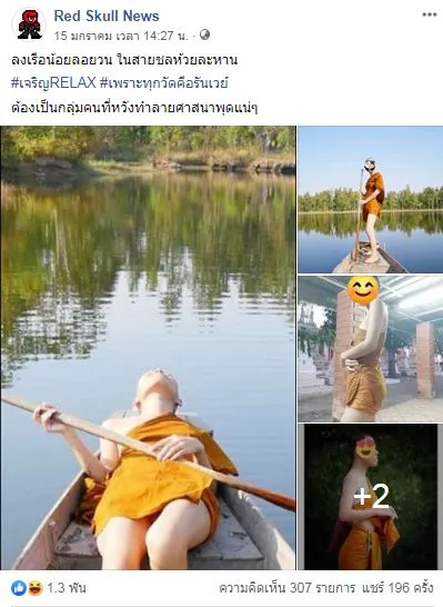 กลายเป็นกระแสที่ถูกวิพากษ์วิจารณือย่างหนักในโลกโซเซียล ในเพจเฟซบุ๊ค Red Skull News ได้แชร์เรื่องราวของชายคนหนึ่งที่แต่งตัวคล้ายพระนั้น เอาจีวรมาห่มเป็นกระโปรงสั้น เกาะอก พร้อมโพสต์ท่าต่างๆ ดูแล้วไม่มีความสำรวมเป็นอย่างมาก