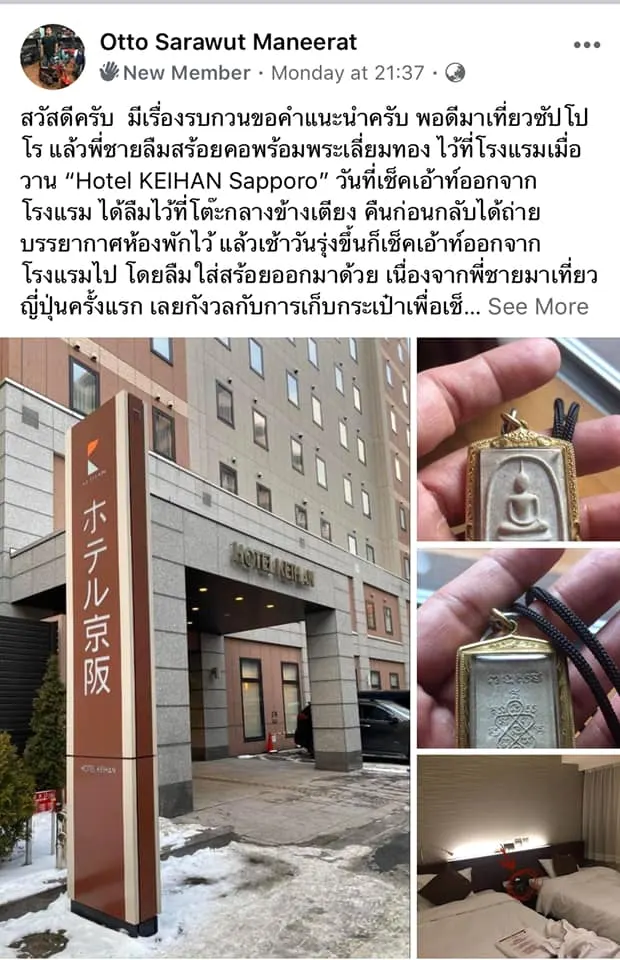 จากที่ก่อนหน้านี้ผู้ใช้เฟซบุ๊ก Otto Sarawut Maneerat ได้โพสต์ขอความช่วยเหลือจากพี่น้องโซเชียล เนื่องจากพี่ชายของเขาได้ทำสร้อยพระล้ำค่าหายที่โรงแรมแห่งหนึ่งในประเทศญี่ปุ่น ซึ่งสร้างความกังวลใจเป็นอย่างมาก เพราะทางฝ่ายเขาเองเกรงว่าจะไม่ได้คืน