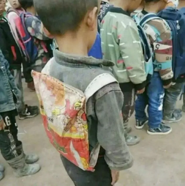 มีเด็กคนหนึ่งสะพายกระเป๋าไปโรงเรียนในวันเปิดภาคเรียนวันแรก คุณครูก็สะดุดตากับกระเป๋าของเขา เนื่องจากเด็กชายคนนี้ฐานะยากจนมาก จะสังเกตได้ว่านักเรียนคนอื่นก็ใส่เสื้อกันหนาวที่หนาและสะอาดสดใส แต่ทว่าเด็กนักเรียนชายคนนี้กลับใส่เสื้อที่บาง และดูสกปรก ที่สะดุดตามากก็คือกระเป๋าสะพายของเขา