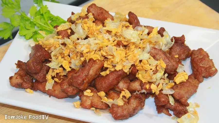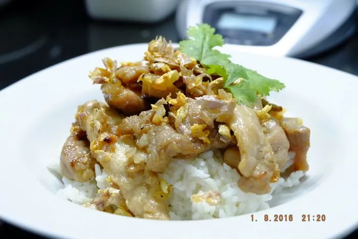 หมูทอดกระเทียม ส่วนมากที่มีก็ร้านข้าวแกงตักจากถาดนั่นล่ะค่ะ