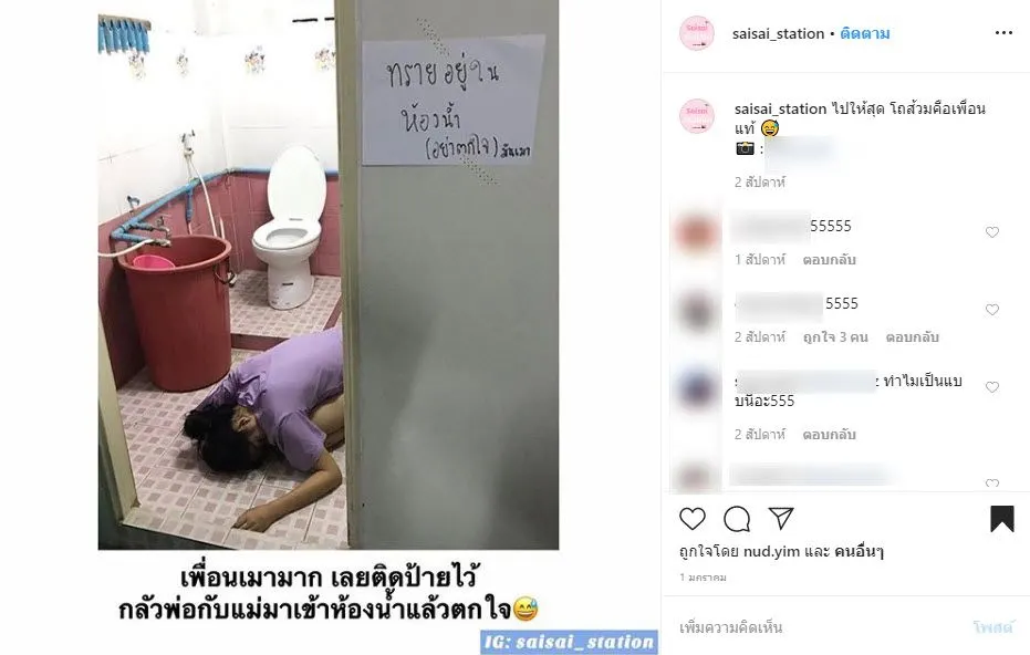 “เพื่อนเมามาก เลนติดป้ายไว้ กลัวพ่อกับแม่มาเข้าห้องน้ำแล้วตกใจ”