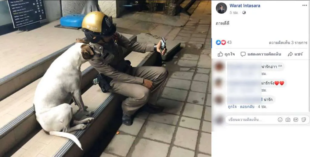 อาจารย์หนุ่มเดินผ่านหน้าร้านสะดวกซื้อ สังเกตเห็นตำรวจทำบางสิ่งกับน้องตูบจรจัด พอดูชัดๆ ทำชาวเน็ตยิ้มไม่หุบ