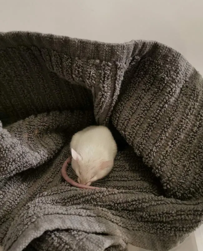 ตอนนี้เธอหาคนมารับน้องหนูไปเลี้ยงอยู่ แต่ก็ไม่แน่ใจว่าจะได้บ้านใหม่ไหม ขอเป็นกำลังใจให้เธอหาคนใจดีที่จะมารับเลี้ยงหนูตัวนี้ต่อไปด้วย แต่ถ้าไม่เจอก็ขอให้อาศัยอยู่ร่วมกับสองเหมียวได้อย่างมีความสุขแทนนะ