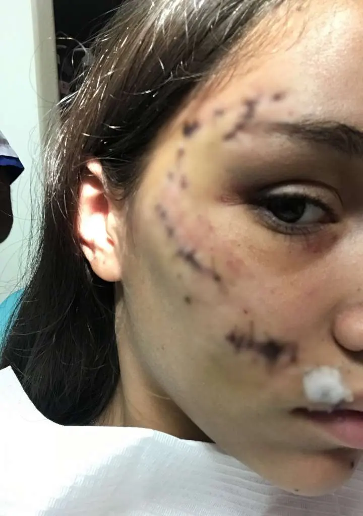 ซานซัน กำลังถ่ายรูปกับ เคไน โดยเธอโอบกอดมัน และพยายามตั้งท่าให้ออกมาดีที่สุด แต่แล้วก็เกิดเรื่องไม่คาดฝันขึ้นแบบเสี้ยววินาที เมื่อเจ้า เคไน ง้างปากอย่างกว้างงับใบหน้าของสาวน้อยก่อนฝังเขี้ยวลงไปบนหน้าของเธอ