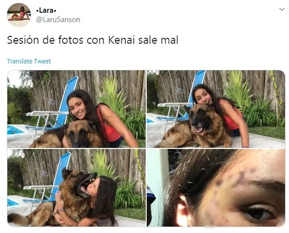 เป็นเรื่องราวที่ไม่คาดคิดว่าจะเกิดขึ้นกับคนที่เลี้ยงน้องหมาไว้ในบ้าน เมื่อ ลาร่า ซานซัน สาวหน้าตาดี วัย 17 ปี จากเมืองตูคูมาน ประเทศอาร์เจนตินา โพสต์เหตุการณ์ในทวิตเตอร์ @LaruSanson ขณะที่เธอกำลังถ่ายรูปกับ เคไน สุนัขแสนรัก สานพันธุ์เยอรมันเชพเฟิร์ด ของเธอ