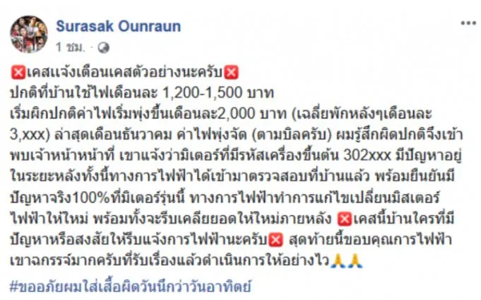 หนุ่มเจอค่าไฟแพงกว่าปกติ พอถาม จนท. บอกว่ามาตรวัดที่ขึ้นต้นด้วยรหัสนี้กำลังมีปัญหาอยู่