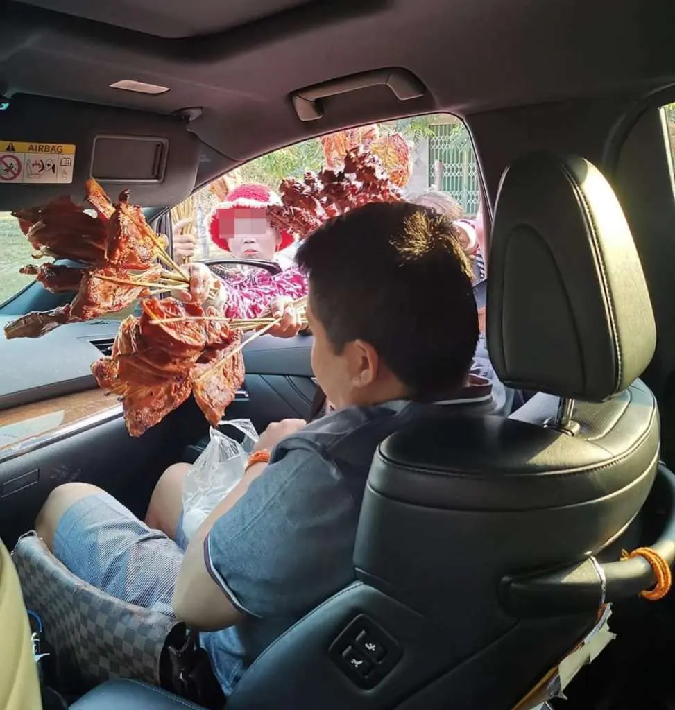 ชาวเน็ตแชร์รูปภาพของชายรายหนึ่งที่กำลังถูกแม่ค้าไก่ย่างรุมล้อมเสนอขายไก่ชนิดที่ว่ายื่นเข้ามาถึงในรถ อีกนิดเดียวจะทิ่มหน้าเขาอยู่แล้ว แบบนี้ไม่ซื้อได้เหรอ จะโดนไก่เคาะหัวหรือไม่