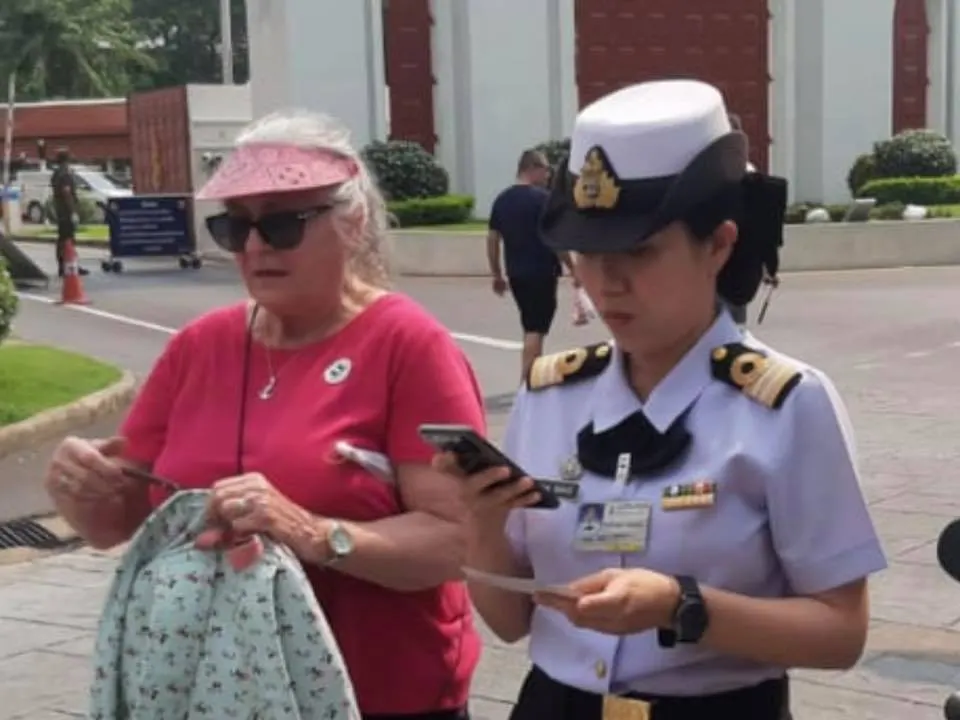 ทหารหญิงอยู่เฉยไม่ได้หลังเห็น หญิงต่างชาติ ยืนร่ำไห้ ด้วยความตกใจกลัว หน้าพระราชวังเดิม