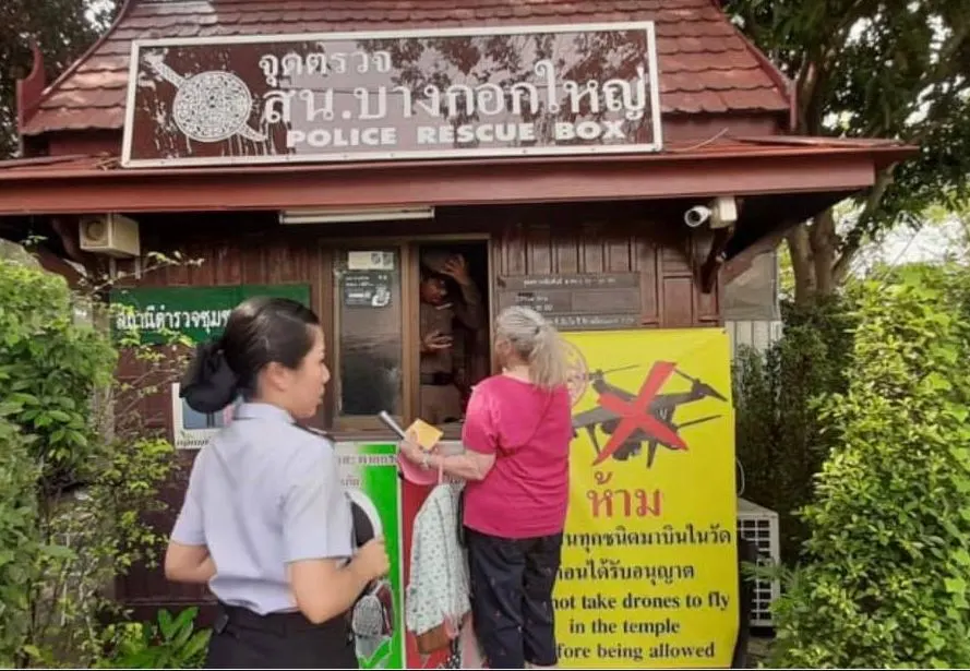 สิ่งที่ช่วยได้ตอนนี้คือ พาเธอเดินไปบริเวณที่จอดรถทัวร์ และภายในวัด เดินหากันจนทั่วแต่ก็ไม่ปรากฎว่ามีนักท่องเที่ยวคนใดมีสติกเกอร์ติดหน้าอกเหมือนเธอเลยซักคนเดียว จนนึกขึ้นได้ว่าใกล้กับร้านกาแฟของทางวัดมี ป้อมตำรวจท่องเที่ยวอยู่ จึงนำเธอไปส่งที่นั่น โดยน้องตำรวจ ที่ประจำอยู่ในป้อม เป็นตำรวจที่ทาง สน.บางกอกใหญ่ ส่งมาประจำการบอกว่าเจอแบบนี้มาหลายเคส และจะรีบประสานกับทางตำรวจท่องเที่ยวให้ช่วยติดตามกับ บริษัททัวร์และ ไกด์ในทันทีน้องตำรวจ พูดคุยและอธิบายอยู่พักใหญ่ ดูทีท่าว่านักท่องเที่ยวหญิงรู้สึกผ่อนคลายและสบายใจขึ้น จนเวลาผ่านไปประมาณ 30 นาที ตำรวจท่องเที่ยว 2 นาย ในชุดสายตรวจก็รุดมาถึงวัดอรุณหลังจากตรวจสอบ และพบว่าบริษัททัวร์ที่นำนักท่องเที่ยวหญิงรายนี้มาวัดอรุณ มีจุดหมายต่อไปคือที่ วัดไตรมิตร เพื่อชมหลวงพ่อสุโขทัยไตรมิตรพระพุทธรูปทองคําที่ใหญ่ที่สุดในโลก ทางตำรวจท่องเที่ยว ก็จะได้นัดหมายกับทางไกด์เพื่อนำ นักท่องเที่ยวหญิงรายนี้ ส่งกลับคณะทัวร์เพื่อเดินทางท่องเที่ยวในประเทศไทยต่อไป
