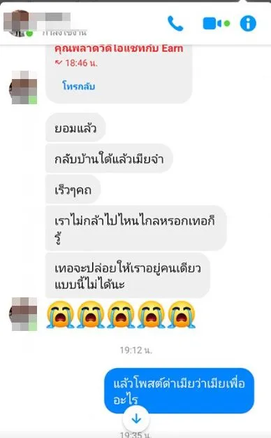 หลังจากนั้นผู้ใช้เฟซบุ๊กท่านนี้ยังได้โพสต์ภาพแชทข้อความของสามีที่มาตามง้อเธอให้กลับบ้าน อย่างอ้อนวอนชนิดใครได้อ่านต้องใจอ่าน เอาไปว่าเราไปอ่านกันซิว่าเธอจะใจอ่อนหรือเปล่า