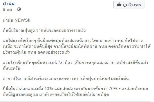 โดยจากโพสต์นี้ ก็เป็นข่าวดีสำหรับคนกรุงเทพ แต่อากาศในภาคอีสานนั้นกำลังจะแย่ลง ยังไงประชาชนก็อย่าลืมสวมหน้ากากป้องกันฝุ่น หากต้องออกข้างนอกด้วยนะคะ