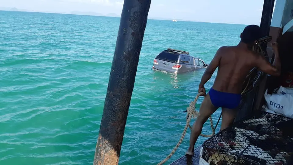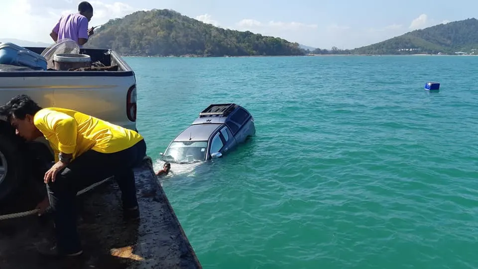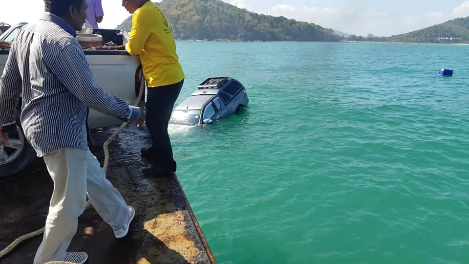 โดยเหตุการณ์นี้เกิดขึ้นที่บริเวณ เขาท่าเรือเกาะสิเหร่ ซึ่งทางพนักงานได้รีบกระโดดลงน้ำไปกู้ไว้ ช่วยเต็มที่แล้วแต่ไม่ทันรถจมลงทะเลไป ทว่าเป็นเคราะห์ดีที่ไม่มีใครติดอยู่ในรถ