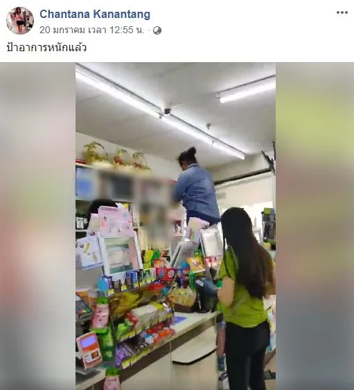 เล่นเอางงกันทั้งร้านสะดวกซื้อหลังหญิงวัยกลางคนรายหนึ่งอยู่ก็ปีนเคาน์เตอร์หยิบสุรา ไปดื้ออย่างไม่แคร์สายตาพนักงานหรือแม้แต่ผู้ซื้อท่านอื่น จนพนักงานร้านต้องถ่ายคลิปไว้เป็นหลักฐานทั้งนี้คลิปดังกล่าวถูกเผยแพร่โดย ผู้ใช้เฟซบุ๊กชื่อ Chantana Kanantang ทั้งนี้เหตุเกิดขึ้นยังร้านสะดวกซื้อย่านรังสิต โดยหญิงรายนี้แรกๆทำทีเป็นลูกค้ามาซื้อของเมื่อเดินวนอยู่ตรงเคาน์เตอร์อยู่นานจึงได้ทำการปีนขึ้นไปหยิบสุรา จนพนักงานงงกันเป็นแถวแถมยังอุ้มสุราเดินออกไปหน้าตาเฉยอย่างไม่มีอะไรเกิดขึ้น จนพลเมืองดีต้องเรียกเจ้าหน้าที่ ปรภ. เข้าช่วยจับเพราะคาดว่าหญิงรายนี้อาจสติไม่ดีซึ่งแรกๆเธอมีการขัดขืนไม่ยอมโดยง่าย ก่อนที่เจ้าหน้าที่จะสามารถเกลี้ยกล่อมได้สำเร็จ