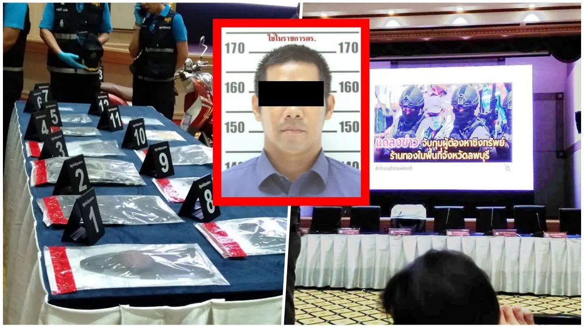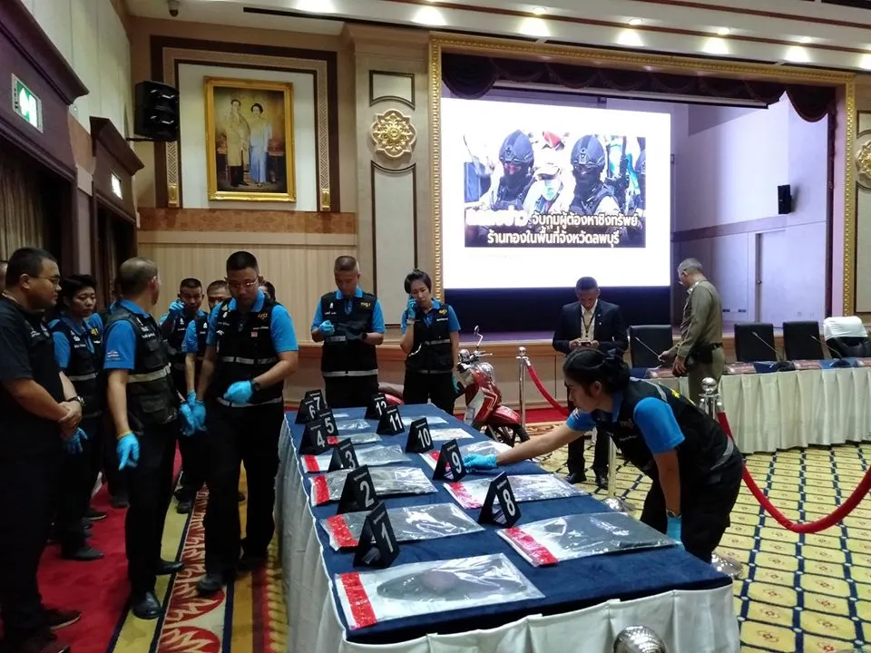 เปิดหลักฐาน!!หลายรายการ!! ที่ผู้ต้องหาใช้ก่อคดี ฆ่าชิงทอง ลพบุรี ช่วงแถลงข่าวที่สำนักงานตำรวจแห่งชาติ
