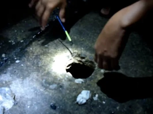 หนุ่มเอาเบ็ดตกปลา ไปหย่อนในรูหินฝาท่อระบายน้ำ ผลออกมาแบบนี้