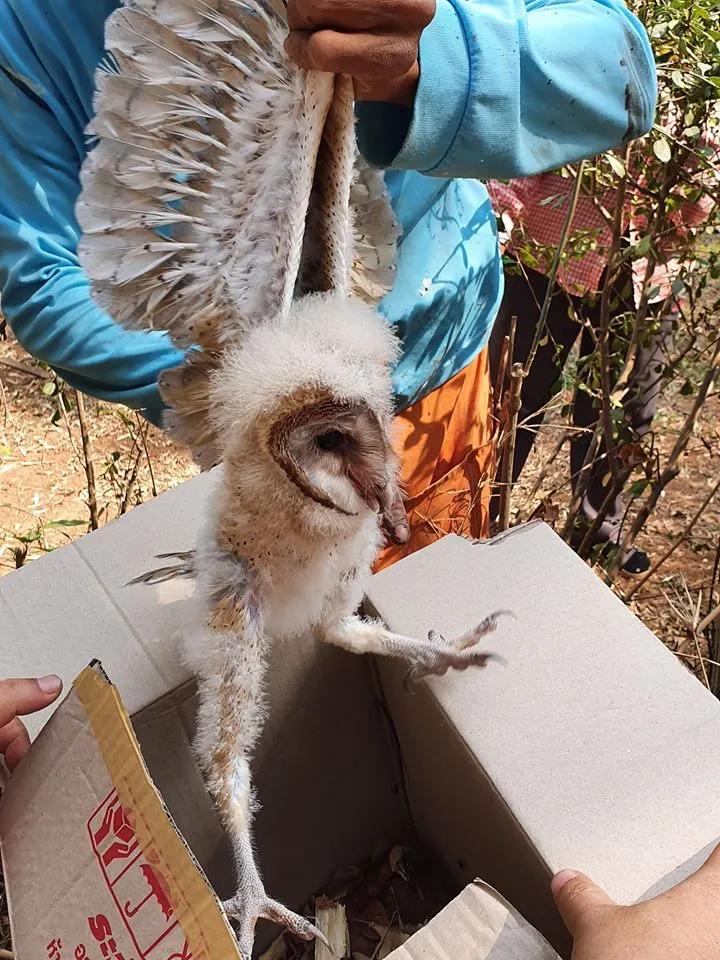 โดยผู้ใช้เฟซบุ๊กท่านนี้กล่าวว่า…ระหว่างขับรถเข้าบ้านที่ภูตะวันเพื่อไปดูแลรีสอร์ท เจอนกแสก 2 ตัว…ตัวนึงคล้ายปีกหัก ตัวนึงปกติ กำลังโดนชาวบ้านเอาไม้เขี่ยไล่ มันกลัวชาวบ้านลนลานจนตัวสั่น เราตั้งใจจะเข้าไปช่วยมันก็ขู่เสียงเหมือนงูเรากับพี่แจ๊คก็แผ่เมตตา บอกเค้าดีๆว่าเรามาช่วยนะ….จนจับลงกล่องได้สำเร็จ ตอนนี้ติดต่อกรมอุทยานแห่งชาติ สัตว์ป่า และพันธ์พืชได้แล้ว รอเค้ามารับไปดูแลต่อเย็นนี้ #ปลอดภัยแล้ว#สัตว์ป่าคุ้มครอง#เพราะปัญหาเรื่องความเชื่อที่มีผลทำให้จำนวนประชากรนกแสกลดลง
