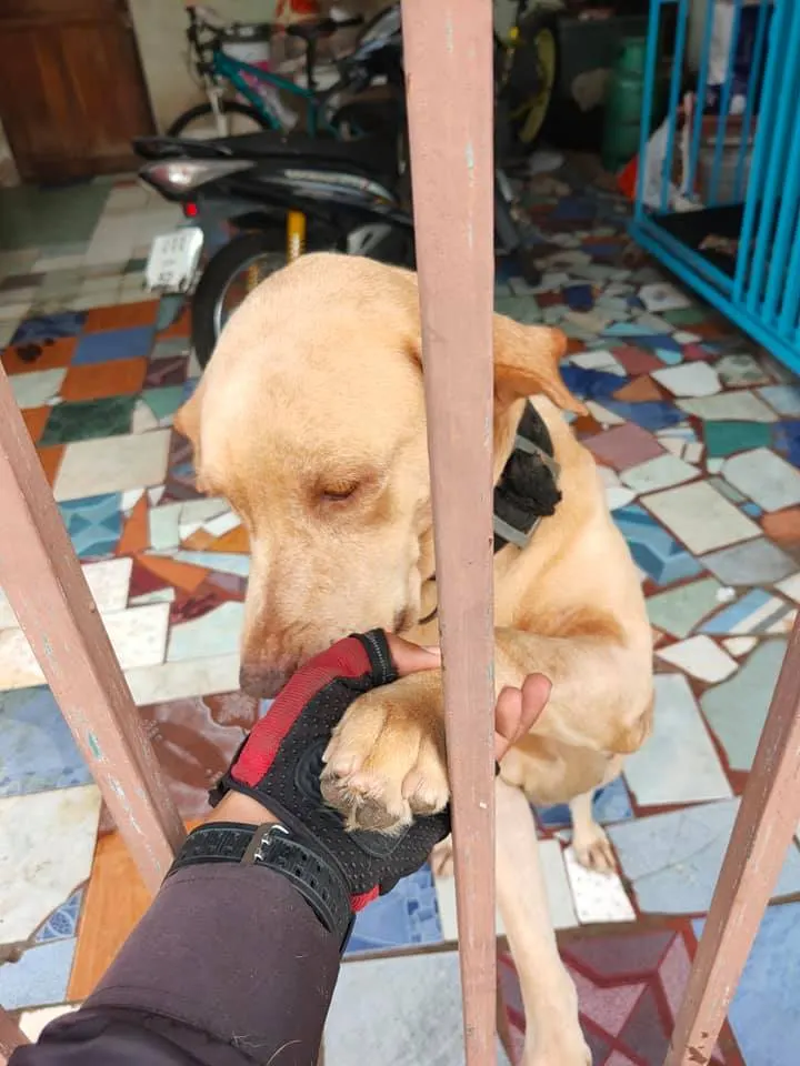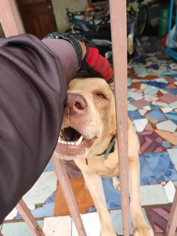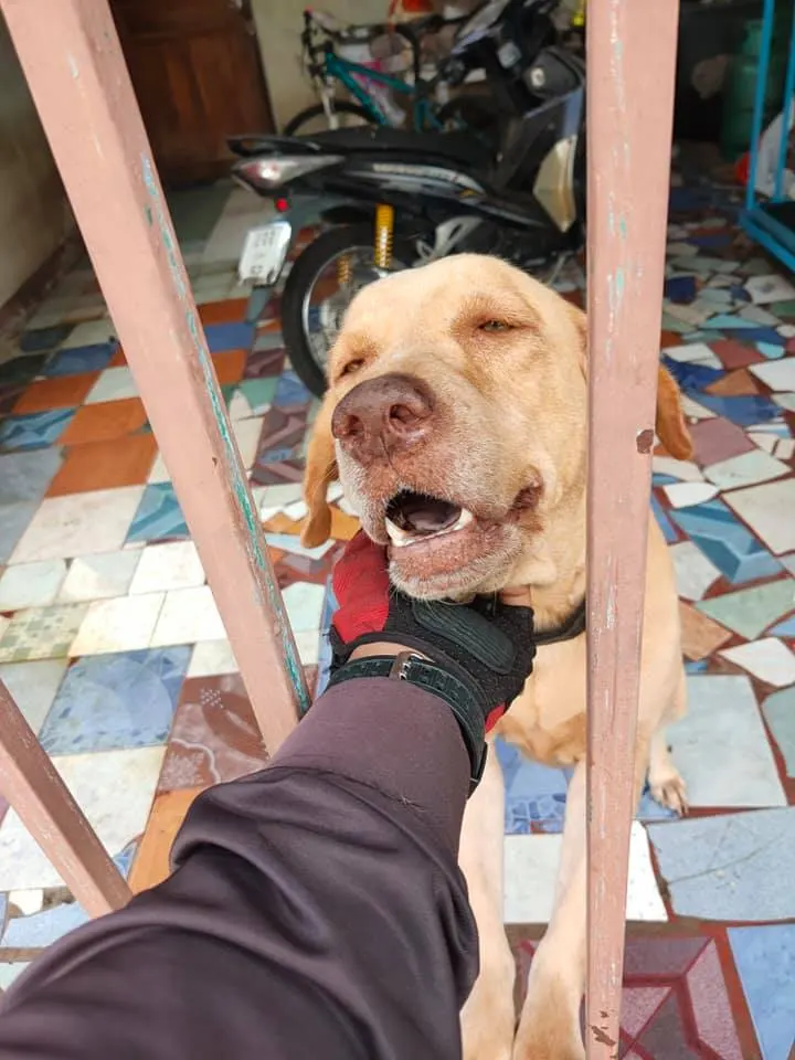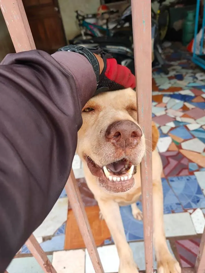 กว่าจะได้ส่งพัสดุผมต้องนวดหัว เกาคาง จับมือ เล่นหู คือผมจะไปส่งพัสดุต่อโปรดเข้าใจผมด้วยคับ แล้วมาเล่นกันใหม่นะ หมาหน้าโหดแต่ทำไมแบ๊วจัง