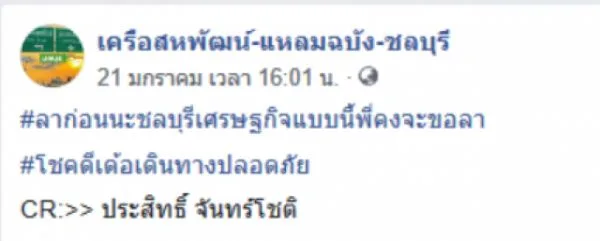อีกหนึ่งเรื่องราวที่โซเชียลให้ความสนใจและร่วมแสดงความคิดเห็นเป็นจำนวนมาก ในช่วงที่ผ่านมา หลายโรงงานประกาศปิดตัวลงอย่างต่อเนื่อง ส่งผลให้เกิดการว่างงานเพิ่มขึ้นงานหายากมากขึ้น หลายๆคนเดินหน้าหาสมัครงานตื่นกันแต่เช้าๆไปรอสมัครงานหวังจะให้ได้งานทำให้ไวที่สุดเพราะค่าใช้จ่ายมากมายที่รออยู่ บางคนตัดสินใจกลับไปใช้ชีวตที่ต่างจังหวัดเดินทางกลับบ้านเกิด ไปทำอาชีพส่วนตัว อย่างเช่นหนุ่มรายนี้ เมื่อวันที่ 21 มกราคม เพจ เครือสหพัฒน์ แหลมฉบัง ชลบุรี ได้โพสต์ข้อความระบุว่า ลาก่อนนะชลบุรีเศรษฐกิจแบบนี้พี่คงจะขอลา โชคดีเด้อเดินทางปลอดภัย CR ประสิทธิ์ จันทร์โชติ