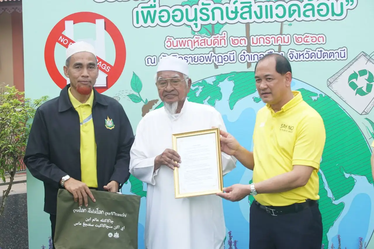 ในวันพฤหัสบดีที่ 23 มกราคม 2563 นายสุรชัย อจลบุญ ผู้ตรวจราชการกระทรวงทรัพยากรรมชาติและสิ่งแวดล้อม เป็นประธานในกิจกรรม "รวมพลังคนไทย เลิกใช้ถุงพลาสติก เพื่ออนุรักษ์สิ่งแวดล้อม" และโครงการส่งเสริมพัฒนาการจัดการสิ่งแวดล้อมในมัสยิด เพื่อให้มัสยิดมีสิ่งแวดล้อมที่ดี และ ชุมชนมีความตระหนัก และเข้ามามีส่วนร่วมในการลดการใช้ถุงพลาสติก โดยได้รับเกียรติ จาก นายไกรศร วิศิษฎ์วงศ์ ผู้ว่าราชการจังหวัดปัตตานี พลตรี เกรียงไกร ศรีรักษ์ รองผู้อำนวยการรักษาความมั่นคงภายในภาค 4 ส่วนหน้า นายพิทักษ์ ก่อเกียรติพิทักษ์ นายกเทศมนตรีเมืองปัตตานี เจ้าหน้าที่ ผู้นำศาสนา และประชาชนเข้าร่วมกิจกรรม ภายในงานประกอบด้วยพิธีการประกาศเจตนารมณ์ “