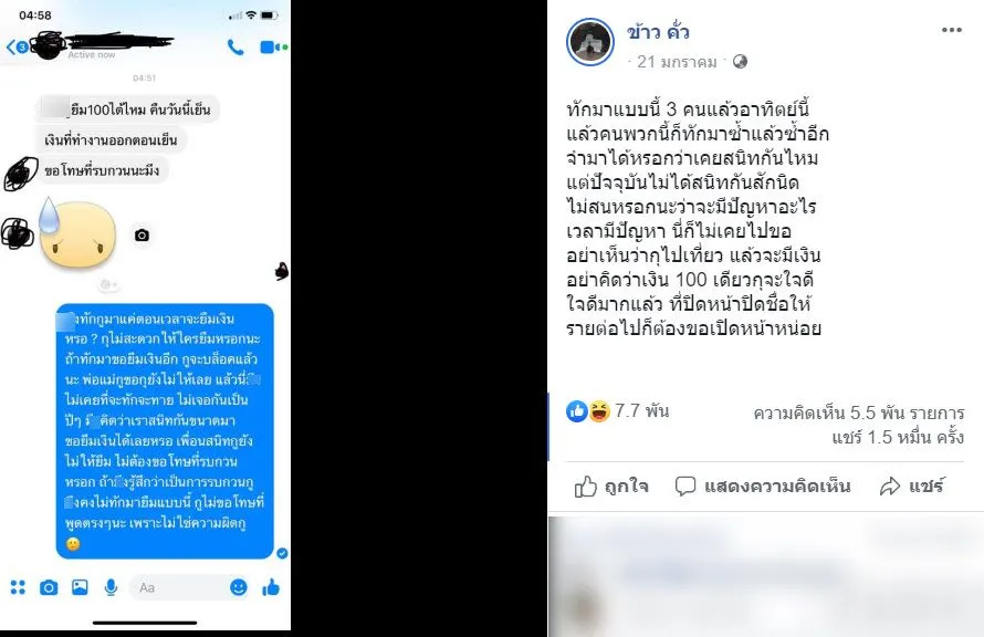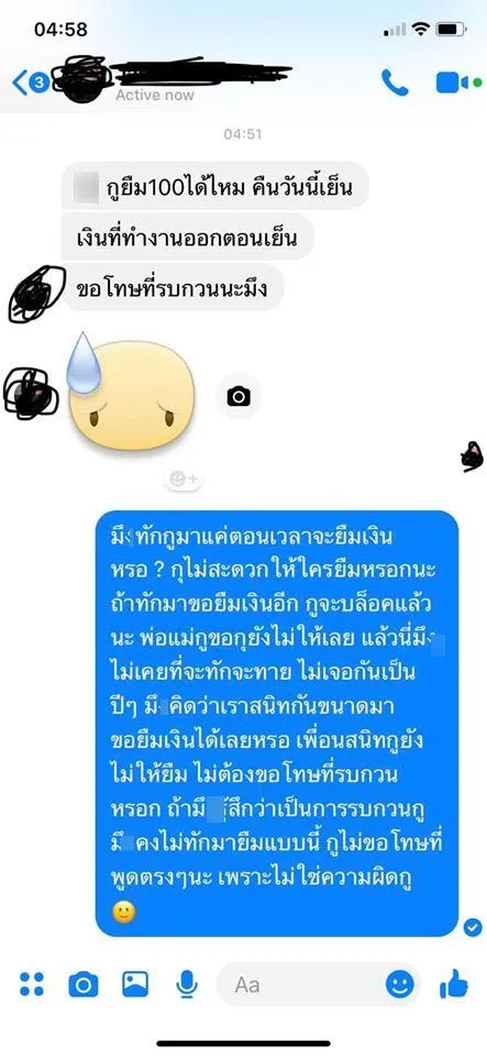 เพื่อนในเฟซ ทักมาหาแค่ตอนจะยืมเงิน เลยตอบกลับหน้าหงาย