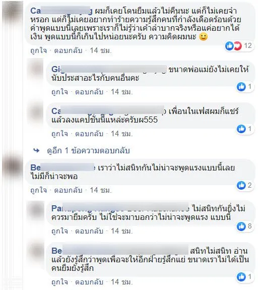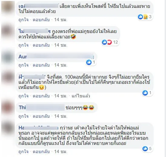 โดยจากโพสต์นี้ก็มีหลายคนเข้ามาคอมเม้นท์กันอย่างมากมาย แต่ก็มี ดราม่าเนื่องจากหลายคนเห็นว่า เจ้าของโพสต์นั้นอ้างถึงพ่อแม่ ที่ว่าขนาดพ่อแม่ขอเงินนั้นยังไม่ให้ จนทำให้ชาวเน็ตมองว่าเจ้าของโพสต์ใจร้ายเกินไป