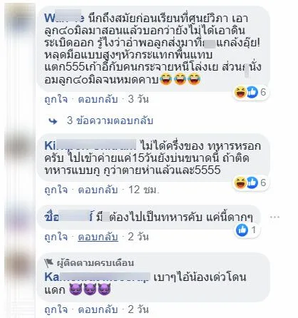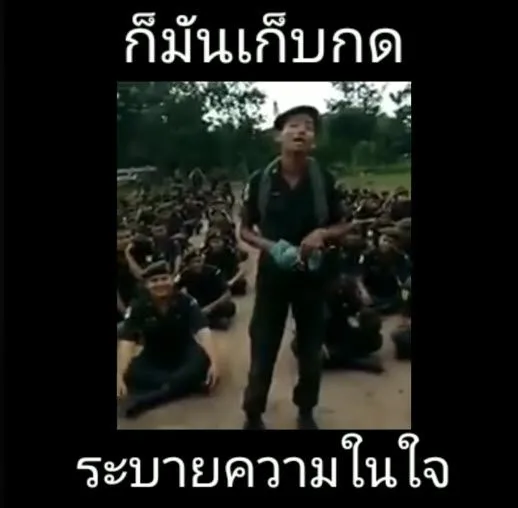 มันก็ไม่ดีหรอกนะ เออะก็เสียตังค์ อะไรพันสองพัน ต้องมานอนกลางดินกินกลางทราย คิดอะไรไม่ออกก็สั่งหมอบสั่งหมอบ แล้วดองเวรจนเน่า ไม่เข้าใจเลย เวลาเข้าแถวก็ต้องยืนตรงเป็นชั่วโมง เหงื่อไหล มดกัดก็เกาไม่ได้ ทั้งนี้ยังระบายเรื่องอื่นๆ ส่วนจะฮา หรือตรงกับชีวิตแค่ไหนไปชมกันเลยจ้า