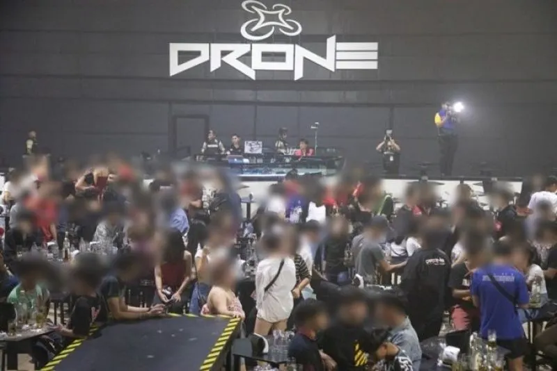 ส่วนร้านโดรนคลับ พบนักเที่ยว จำนวนกว่า 200 คน เป็นเยาวชนอายุต่ำกว่า 20 ปีเข้าใช้บริการ จำนวน 78 คน จึงดำเนินการทำบันทึกและแจ้งผู้ปกครองมารับตัวกลับบ้าน นอกจากนี้ตรวจพบนักเที่ยวไม่พกบัตรประจำตัวประชาชน จำนวน 19 คน จึงนำส่งพนักงานสอบสวนดำเนินคดีและเปรียบเทียบปรับตามกฎหมายต่อไป โดยร้านโดรนคลับ มีนางสาวอรทัย ภักดีสมัย อายุ 31 ปี แสดงตัวเป็นผู้ดูแลร้าน มีนางสาวรักษยา แสงฤทธิ์ เป็นผู้รับใบอนุญาตให้ตั้งสถานบริการ จึงได้จับกุมตัวและร้องทุกข์กล่าวโทษในฐานความผิด