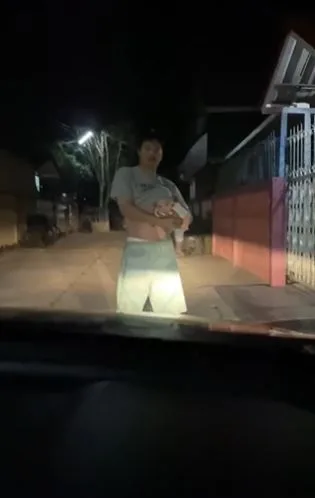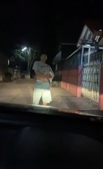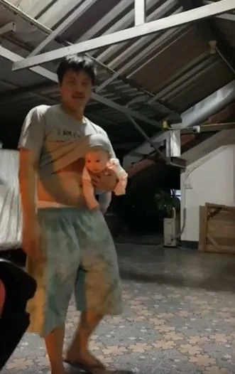 โดยคุณพ่อและคุณลูกน้อยได้ออกมายืนรอรับคุณแม่อยู่หน้าบ้าน ที่น่ารักสุดๆคือคุณพ่อกลัวว่าหัวลูกจะเย็นเกินไปจึงได้เอาชายเสื้อมาคลุมหัวให้ เป็นภาพที่เห็นแล้วทั้งฮาทั้งน่ารักมากๆเลยทีเดียว