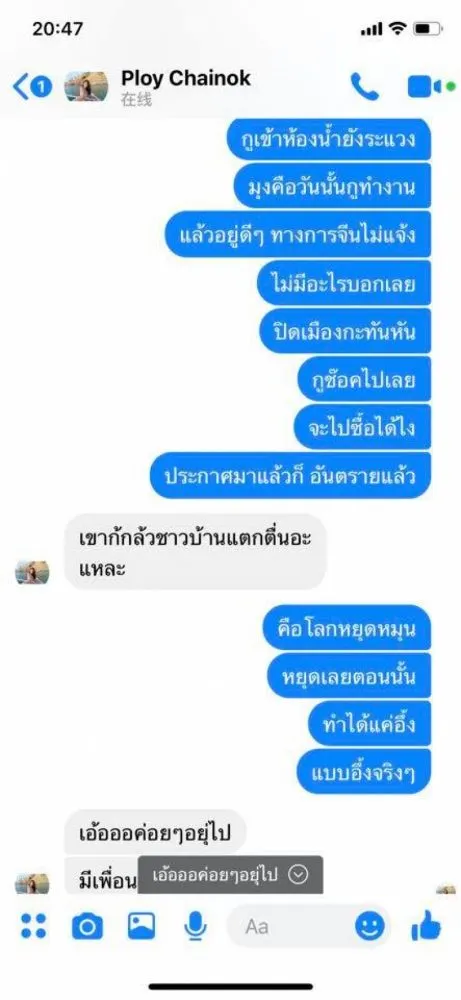 สาวไทย ในมณฑลหูเป่ย์ แชทเล่าให้เพื่อนฟัง