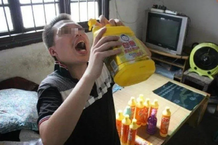 หนุ่มสุดเพี้ยน ติดเกมจนเบลอ เผลอกระดกน้ำยาซักผ้า นึกว่าน้ำอัดลม