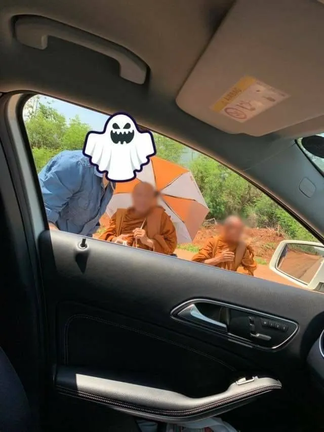 ขับรถไปรับสามีที่บ้านหนองเม็ก อ.หนองหาน อุดรธานี ขณะที่ขับผ่านบ้านหนองเม็กพบว่ามีพระสงฆ์ 1 รูป ยืนข้างถนนโบกรถยนต์ แต่ไม่มีใครจอด สามีจึงรับมาแล้วกลับเส้นทางเดิม โดยครั้งนี้ก็ยังเจออีก ตนนึกขึ้นได้ว่าเป็นพระที่เจอเมื่อปีที่แล้ว ตนจึงจอดรับและพระก็บอกให้ไปส่ง ซึ่งตนได้ไปส่งแต่ไม่ถึงที่หมาย เพราะไปคนละเส้นทางกัน จึงจอดให้พระรูปดังกล่างลงข้างทางเพื่อให้ไปต่อรถ จากนั้นพระก็ขอเงินค่ารถโดยสาร ตนเลยให้ไป200บาท แต่พระบอกไม่พอต้อง 300 บาท ถึงจะพอค่าเดินทาง ด้วยความตกใจตนจึงให้ไป 300 บาท จากนั้นเมื่อขับรถผ่านถนนเส้นนี้ก็จะพบพระมายืนโบกรถอยู่หลายครั้ง และคิดว่าไม่น่าใช่พฤติกรรมของพระสงฆ์ตามปกติจึงได้โพสต์เตือนประชาชน