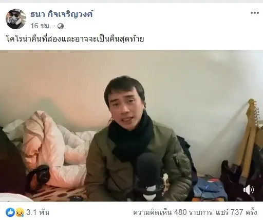 จากนั้นผู้ใช้เฟซบุ๊กรายหนึ่งชื่อ ธนา กิจเจริญวงศ์ หรือ โอ๋ นักร้องนำวงนิว โอลด์ สต๊อก ซึ่งอยู่ระหว่างการเดินทางไปทำงานที่เมืองต้าหลี่ มณฑลยูนนาน ทางตอนใต้ของจีน ได้อัดคลิปลงเฟซบุ๊ก โดยระบุว่า “ตอนนี้ติดอยู่เมืองต้าหลี่ กับเพื่อนสมาชิกรวม 5 คน โดยปิดเมืองเป็นคืนที่ 2 แล้ว สถานการณ์ตอนนี้กดดันมากและไม่รู้ว่าอาหารที่ตุนไว้จะเพียงพอหรือไม่ ซึ่งตอนนี้ผมต้องทนกับสถานการณ์นี้ ผมก็มีครอบครัว มีวงที่ยังต้องเดินทางไปต่อ ซึ่งตอนนี้ยังทำงานที่นี้ไม่ได้ ผมรอที่นี่ไม่ไหว 3 เดือน 6 เดือน คุณอาจจะมีความช่วยเหลือเข้ามาถึง แต่ตอนนั้นผมอาจจะกลายเป็นศพไปแล้ว”