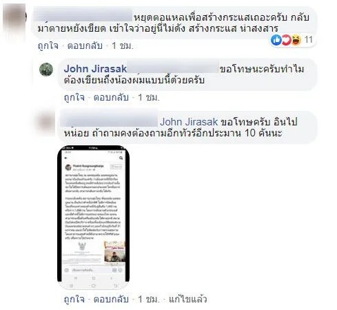 อย่างไรก็ตามในบางคอมเม้นต์ได้เข้ามาคอมเม้นต์ว่า ผมไม่รู้นะเจตนาของคุณคืออะไร แต่ข่าวที่คุณพ่นออกมา มันพิสูจน์ได้ว่าคือข่าว ปลอม ข้อมูลต่างๆ ผิดเพี้ยนไปหมด ทำให้คนภายนอกมองว่าน่ากลัวมากกว่าที่คิดและตื่นตระหนก มากกว่าความเป็นจริง ตาหลี่อยู่ไกลจากอู่ฮั่นตั้ง 2000 กิโลเมตร เมืองที่คุณอยู่ก็ไม่ได้ถูกปิด อยากกลับไทย ก็กลับสิ มีเครื่องบินทุกไฟล์ทเหมือนคุณต้องการเรียกร้องความสนใจ ถึงแม้หลายๆคนไม่ได้อยู่ที่จีน แต่มันพิสูจน์ว่าที่คุณพูดมาเป็นเรื่องโกหก คนไทยไม่ได้โง่ครับ อินเตอร์เน็ตเข้าถึงทุกบ้าน ทำผิดแล้วยังไม่สำนึก คิดก่อนทำครับ “คนดีชอบแก้ไข คนจัญไรชอบแก้ตัว”