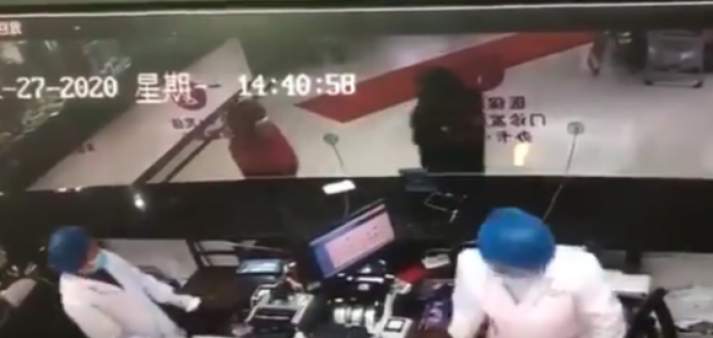 โดยเหตุการณ์นี้เกิดขึ้นที่โรงพยาบาล Xiaogan Maternal and Childrens Health Care Hospital ในมณฑลหูเป่ย และสิ่งที่ทำให้เจ้าหน้าที่นั้นหวาดกลัวคือชายรายดังกล่าวมาจากเมืองอู่ฮั่น จุดกำเนิดของเชื้อไวรัสร้ายนั้นเอง ทั้งนี้จากพฤติกรรมของชายรายนี้สร้างความแตกตื่นต่อเจ้าหน้าที่ผู้จ่ายยาเป็นอย่างมากกับสิ่งที่เค้าทำในภาวะน่าหวาดกลัวเช่นนี้แต่ยังถือว่าเป็นโชคดีของเจ้าหน้าที่ จ่ายยาทั้งสองเพราะผลของชายรายนี้นั้นมีอาการแค่ป่วยไข้หวัดธรรมดาเท่านั้น ไม่ได้ร้ายแรงอะไรแต่พฤติกรรมของเค้ากลับสร้างความเดือดร้อนให้เจ้าหน้าที่เป็นอย่างมากและมีรายงานว่าชายรายนี้ถูกแจ้งความเป็นที่ เรียบร้อยกับพฤติกรรมหยาบคายที่แสดงออกมา