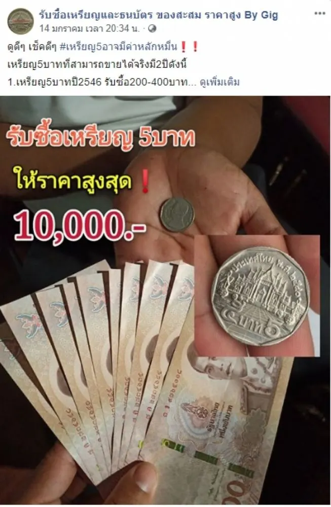 เมื่อวันที่ 14 มกราคม 2563 เพจเฟซบุ๊ก รับซื้อเหรียญและธนบัตร ของสะสม ราคาสูง By Gig ได้มีการโพสต์รูปภาพพร้อมทั้งระบุข้อความเอาไว้ว่า