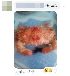 จากกรณีผู้ใช้เฟซบุ๊ก Oat Green Oat ได้โพสต์ภาพปูตัวหนึ่งลงในกลุ่ม บ้านฉาง@ระยอง ด้วยข้อความระบุว่า “ปู ไรครับเนี่ย กินได้ไหม ใครพอรู้บ้าง” ซึ่งได้กลายเป็นที่สนใจของชาวเน็ตเป็นจำนวนมาก นอกจากนั้นเมื่อเวลาผ่านไปสักพักผู้โพสต์ได้เล่าเรื่องราวลงในคอมเมนต์ เผยว่าจนได้นำปูตัวดังกล่าวไปต้มจนสุก และหลังจากนั้นก็ได้รีบไปโรงพยาบาลเพื่อให้หมอตรวจสุขภาพอย่างเร่งด่วน