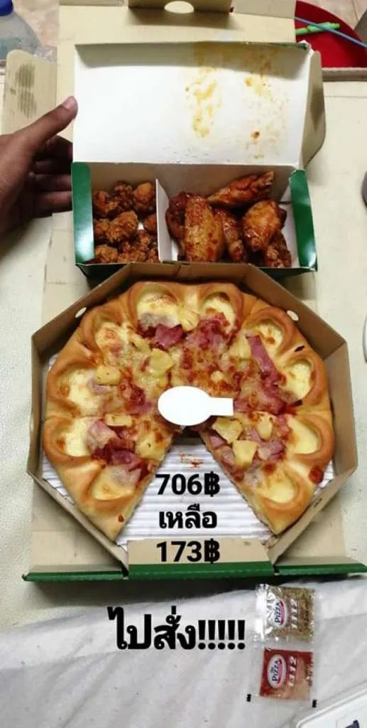 โดยเจ้าตัวระบุว่า วันนี้จะมาบอกบุญการสั่งพิซซ่า จาก 706 เหลือ 173 กันค่ะ 1ชุดประกอบไปด้วย ไก่BBQ ไก่ทอดซอสเกาหลี เลือกเอาตามชอบ ไก่ป๊อบ พาสต้า กินหมดแล้วเลยไม่ได้ถ่ายรูป 5555 มีหลายหน้า จำไม่ได้ว่ามีไรมั่ง พิซซ่าถาดกลาง