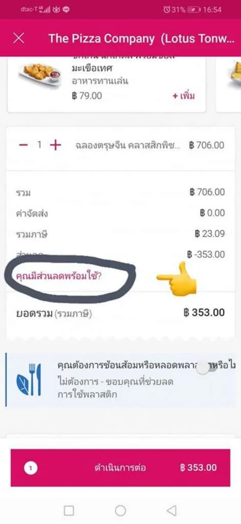 สาวรีวิว การสั่งพิซซ่าผ่านทางออนไลน์ จาก 706บาท เหลือ 173