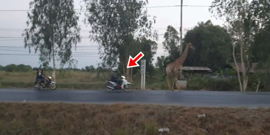 เผยสาเหตุที่ทำให้คนขับรถมอเตอร์ไซค์ชนยีราฟกลางถนน