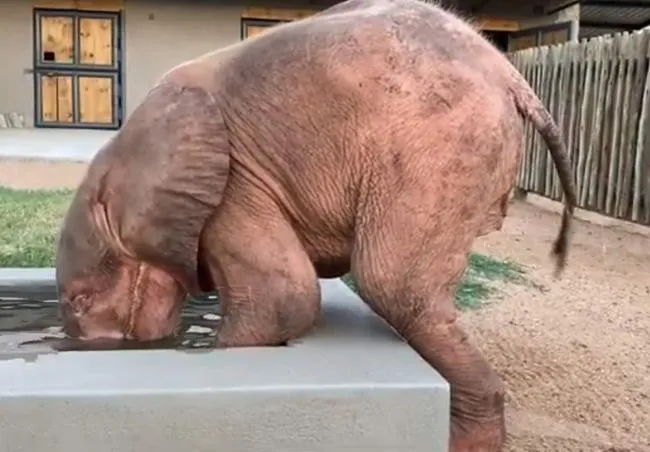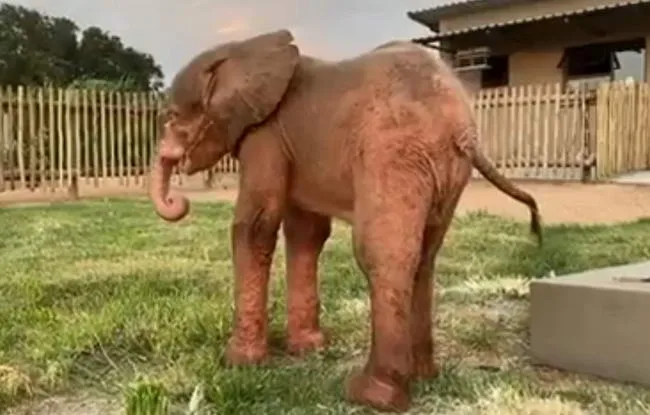 ลูกช้างเผือกตัวน้อยเพศเมียนี้ มีชื่อว่า Khanyisa ผิวของมันพิเศษและแตกต่างจากช้างตัวอื่นๆ ที่ปกติมักจะมีผิวหนังสีเทา แต่มันกลับมีผิวหนังสีชมพูแทน มันถูกพบเข้าโดยลำพังขณะกำลังติดกับดักบริเวณพื้นที่เขตสงวนสัตว์ป่าซึ่งอยู่ติดกับอุทยานแห่งชาติ Kruger ทางตอนใต้ของทวีปแอฟริกา
