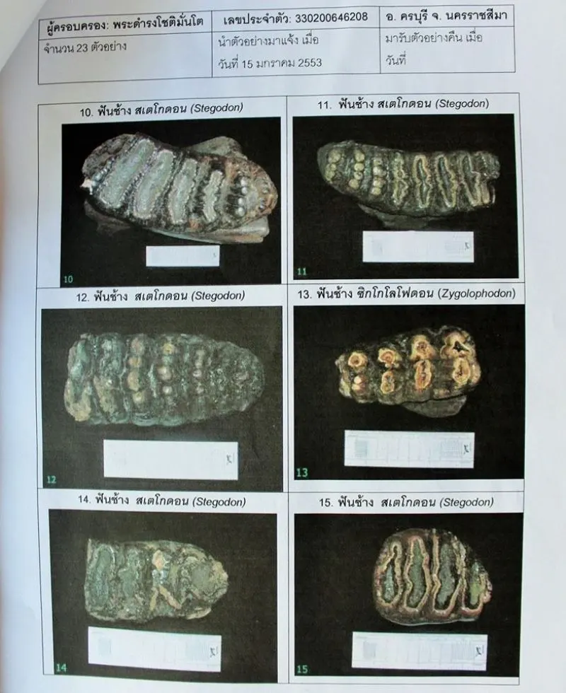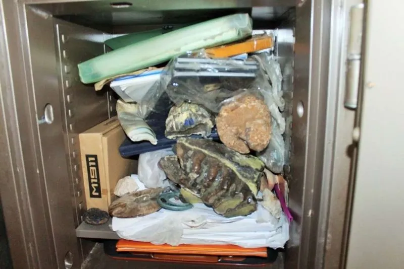 เมื่อเปิดตู้เซฟพบว่าภายในตู้เซฟนั้นเต็มไปด้วย “ฟอสซิลสัตว์ดึกดำบรรพ์ เป็นจำนวนมาก พร้อมเอกสารหลักฐานการแจ้งผลการตรวจสอบและการครอบครองฟอสซิลดังกล่าวจากสำนักคุ้มครองซากดึกดำบรรพ์ กรมทรัพยากรธรณี ที่ระบุว่าฟอสซิลส่วนใหญ่นั้นเป็นชิ้นส่วนฟันช้างโบราณ ที่มีอายุยาวนานประมาณ 1จุด8 ล้านปี จนถึง 16 ล้านปี