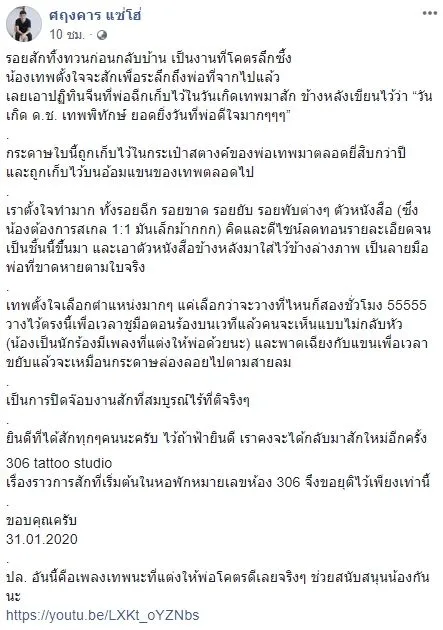 เป็นการปิดจ๊อบงานสักที่สมบูรณ์ไร้ที่ติจริงๆ ยินดีที่ได้สักทุกๆคนนะครับ ไว้ถ้าฟ้ายินดี เราคงจะได้กลับมาสักใหม่อีกครั้ง 306 tattoo studio เรื่องราวการสักที่เริ่มต้นในหอพักหมายเลขห้อง 306 จึงขอยุติไว้เพียงเท่านี้ ขอบคุณครับ 31.01.2020