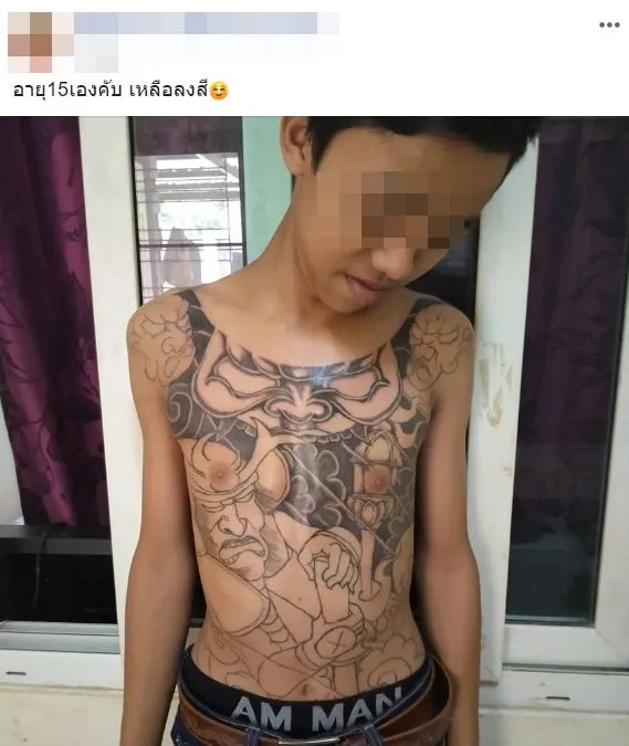 กลายเป็นประเด็นร้อนที่โลกออนไลน์เข้ามาวิจารณ์กันเป็นจำนวนมาก จากกรณีเยาวชนไทยอายุ 15 ปีรายหนึ่ง ได้โพสต์ภาพอวดรอยสักบริเวณลำตัว โดยมีข้อความระบุว่า “อายุ15เองคับ เหลือลงสี”