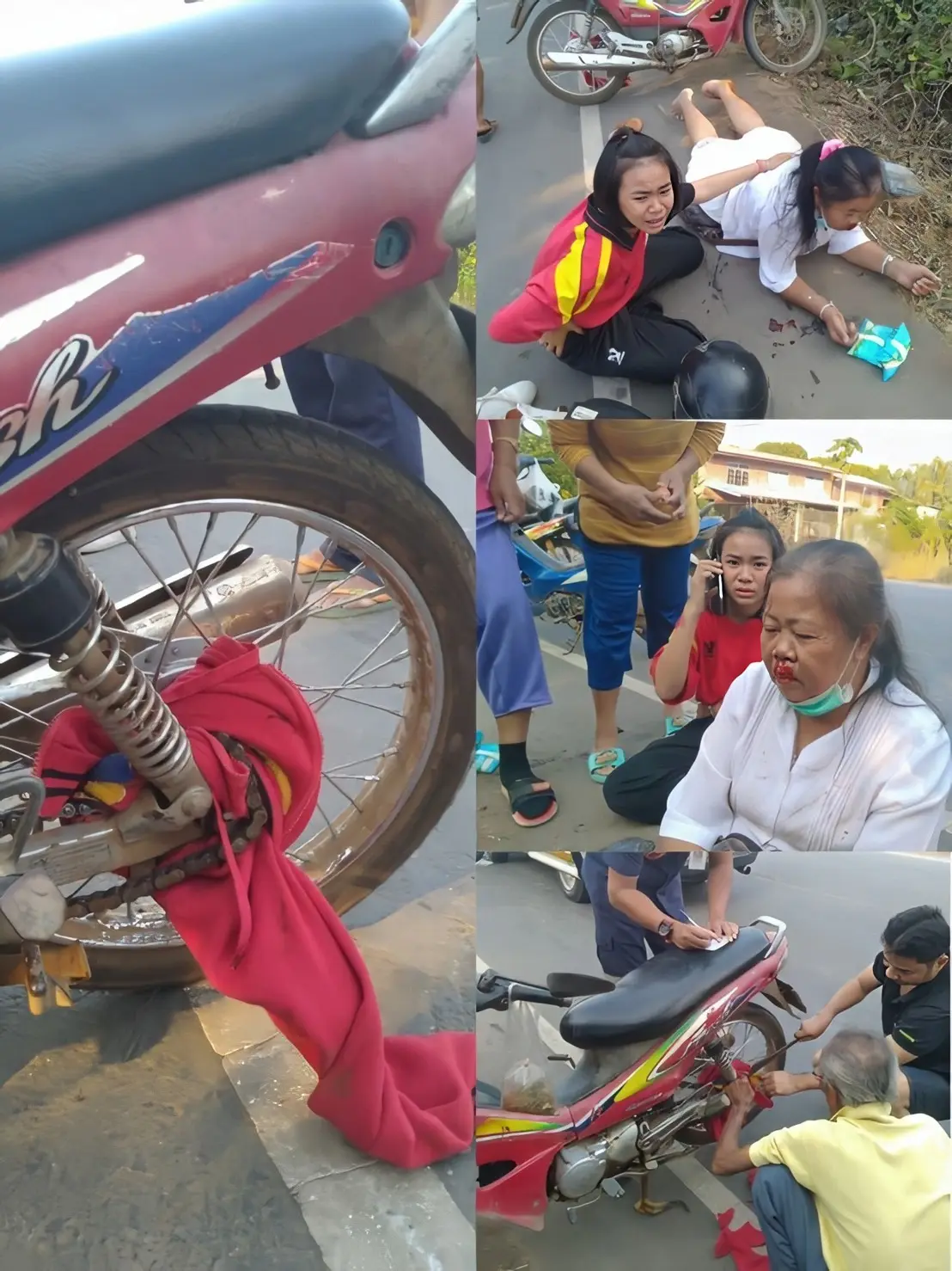 อุทาหรณ์!! เสื้อแขนยาวพันกับโซ่มอ'ไซค์ ล้มเสียหลัก เจ็บทั้งคัน