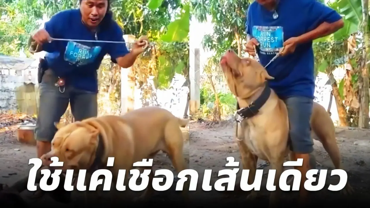 หนุ่มโชว์วิธีแยกสุนัขพิทบูลกัดกัน โดยใช้แค่เชือกเพียงเส้นเดียว
